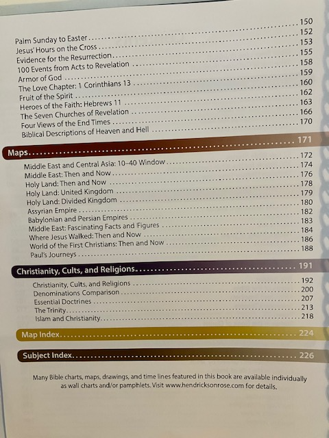 07/13/2025 – “Rose Book of Bible Charts, Maps & Time Lines”-10th Anniversary Edition – Rose Publishing (ISBN 9781596360228) // Table of contents shown below – a very useful bible study tool!